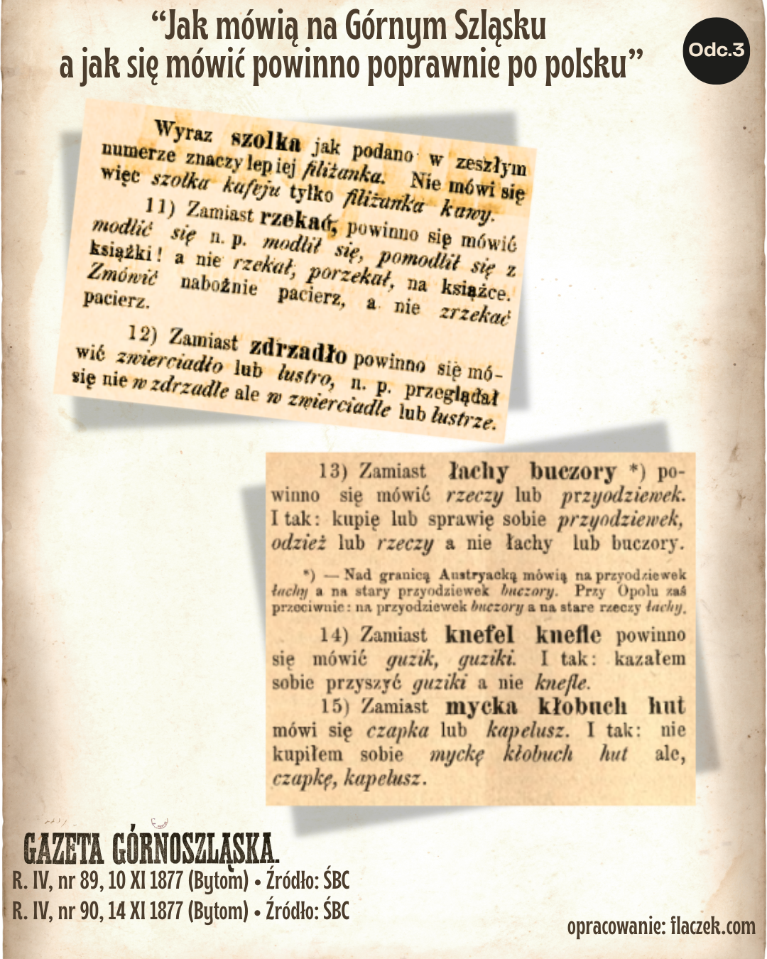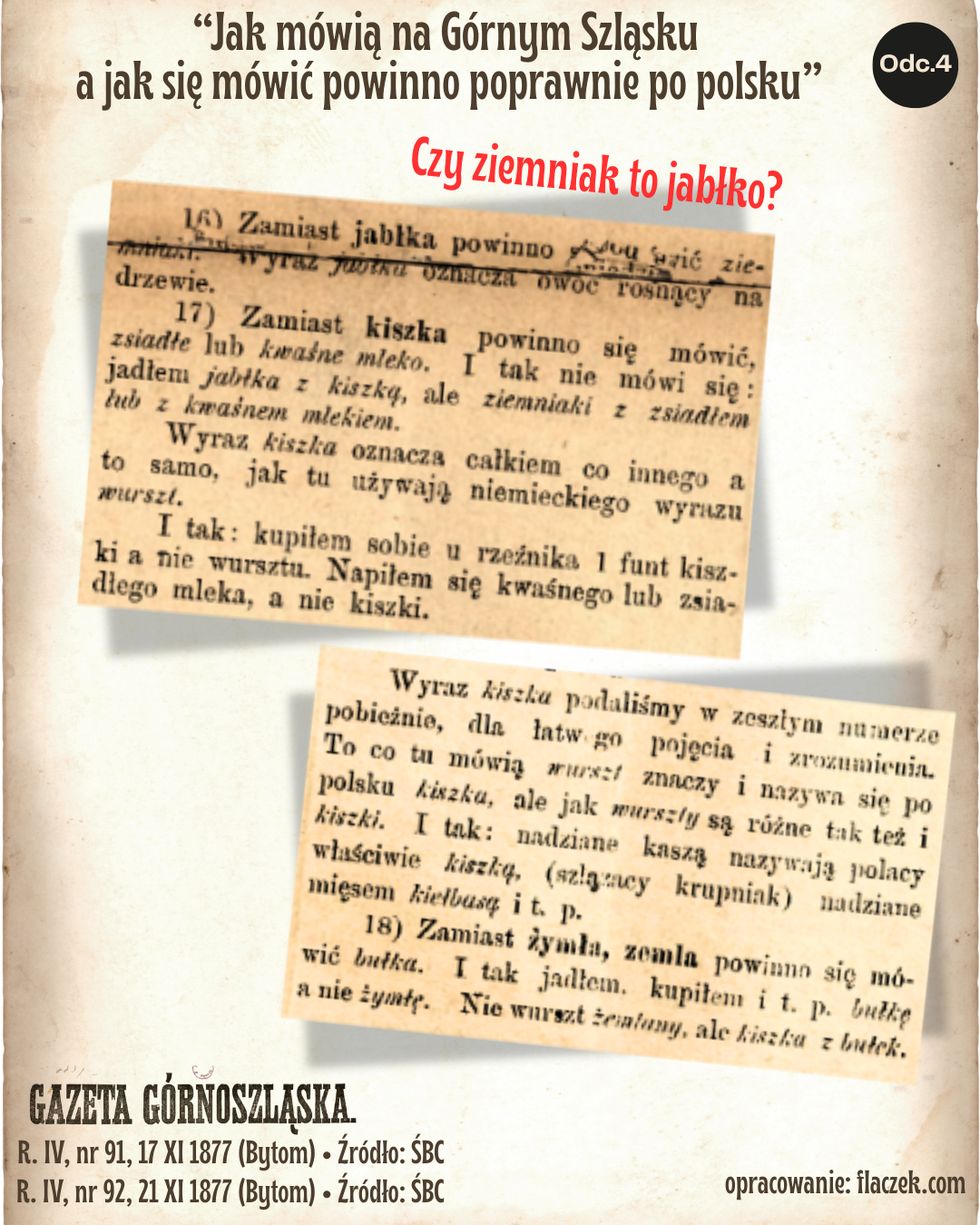 „Dziepiyro terazki Goduli sie łotwarły łocy. Dziepiyro terazki doł sie pozór, wiela to zła lucyniół na górnośląskiej ziemi.”